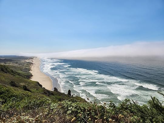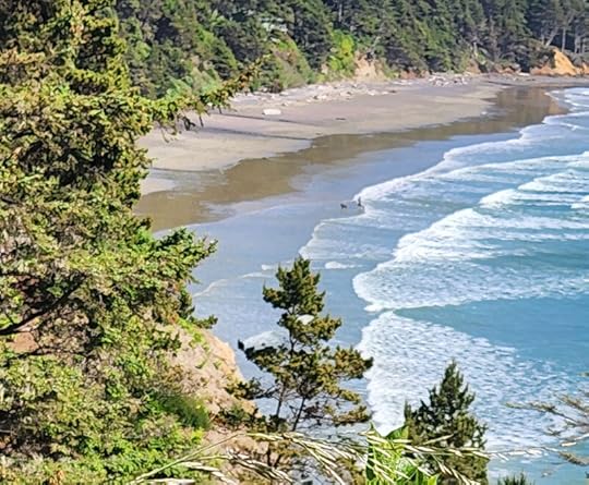 That’s a photo of Rosie, my intrepid Irish Setter, and my daughter playing on Beverly Beach on the Oregon coast a few months back. You can just barely make them out on the beach if you squint. We spent a lovely few days at Otter Rock, a moody, somewhat isolated headland tucked off Highway 101 that’s great if you want to get away from the crowds but not so great if you want what the crowds are often looking for: restaurants, shops, attractions, and the like. Fortunately, Newport is only a ten-minute drive to the south, which offers all of that and more, so staying at Otter Rock is a little like having the best of both worlds.