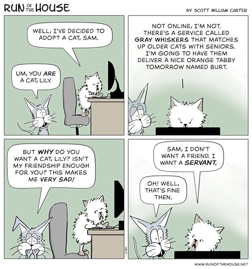 If you’d like to try out Run of the House, a comic strip about what a quirky group of pets do when their people aren’t around, you can do so at www.runofthehouse.net. Monday comics are always free, and there’s no obligation to upgrade to a paid account unless you’d like to get a second comic in your inboxes every Wednesday. I appreciate every subscriber!