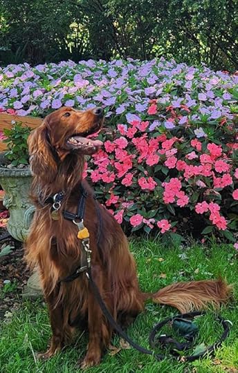 That’s Rosie at the park today, with impatiens blooming in the background. After getting our flu shots, and treating ourselves to breakfast as a reward, we hit the local Saturday Market and stopped for a walk at the park. Early fall days are often gorgeous here in the Willamette Valley and today was no exception. My heart goes out to people in Florida, who just experienced quite the opposite of gorgeous. (Boy, that’s the understatement of the year, isn’t it?) We have our own worries as far as natural disasters are concerned (every heard of the really big one?) but hurricanes are not one of them.