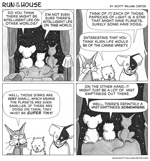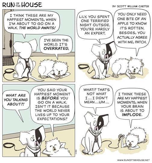 The third Karen Pantelli book will soon be entering production, due out in six weeks or so, and the next Garrison Gage book (I’ve got about a third written) shouldn’t be too far behind. I’ve continued to publish two Run of the House comics a week via email and at www.runofthehouse.net. You can see one of the latest at the bottom of this post. If you’d like to subscribe, Mondays are free. Wednesdays are for paying subscribers, but the annual subscription is currently 50% off.