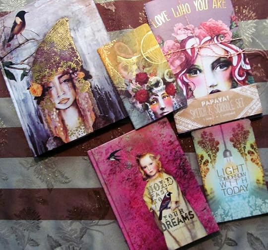 I collect Papaya art journals and notebooks, as they are beautiful and there really is nothing else quite like them on the ready-made for writing market. Here's the latest batch I picked up during my last visit to the art store: