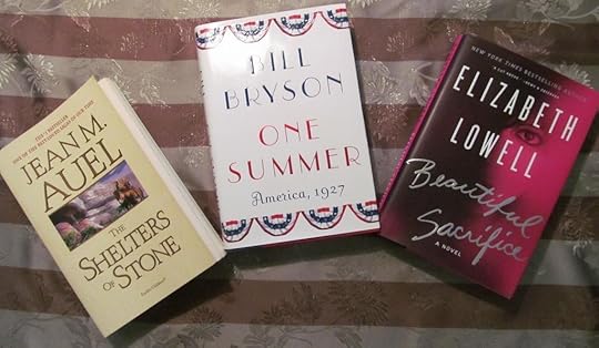 I picked up the trade paperback of Jeal M. Auel's The Shelters of Stone at a neighbor's yard sale for fifty cents so definitely a bargain. I lent out my own copy a few years back and the borrower never returned it, so this was really a replacement buy. I also wanted to read it again before I order the final book to finish up the series (all I have left now to read is The Land of Painted Caves, book six.) This book really couldn't compete with my favorite, The Valley of Horses, but I thought the author did a good job moving the story along with it.