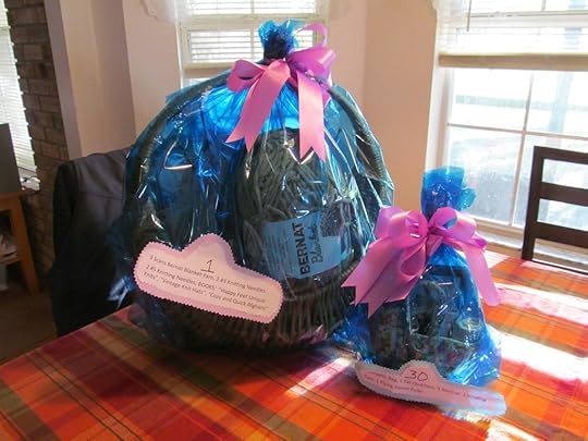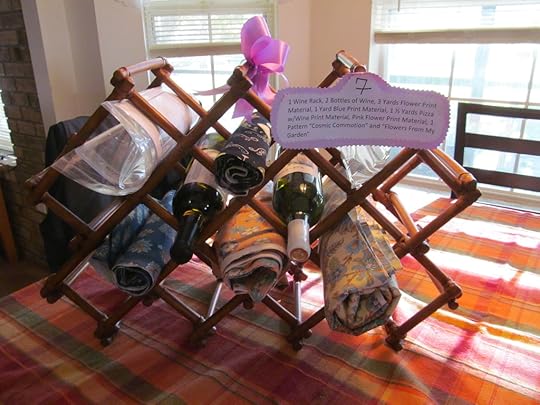 My daughter was the big winner with this lovely wine rack filled with fabric, patterns and even two bottles of very nice vino: