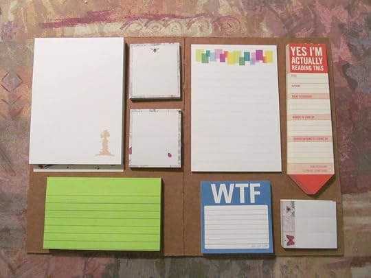 For the note pads that had flimsy backings I applied some strips of double-sided tape and stuck them to the carboard.