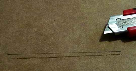 For the note pads that had strong, bendable backings I used a box cutter to cut a slit just below the placement line for that pad. When you do this, remember to be careful with the cutter or cutting utensil you use (most of them are insanely sharp), and work on a surface like a cutting mat, a piece of scrap wood, a bundle of newspapers or whatever you have that won't be ruined by the cutting process.