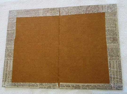 Place the decorative paper you want on the outside to the glued side of the carboard piece(s); if you're using one piece fold in half to create a spine crease: