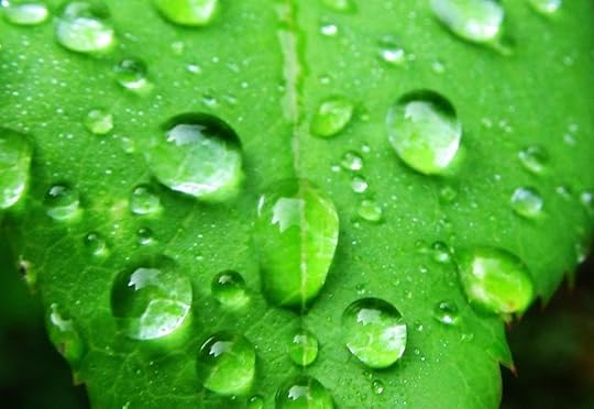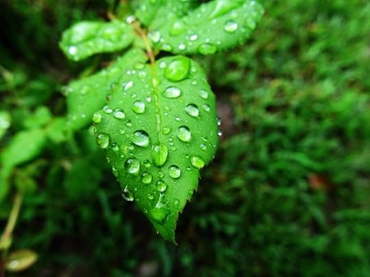This is a leaf on one of my rose bushes, covered with early morning dew. At first glance it's okay but really nothing special. Yet when I focused the camera a bit closer, more details came out, such as the structure of the leaf, at points magnified by the dew drops. The colors also seemed more intense, and new things became apparent that I didn't notice when I snapped the first pic. I couldn't see the very tiny drops of dew surrounding the larger ones until I zoomed in and snapped this: