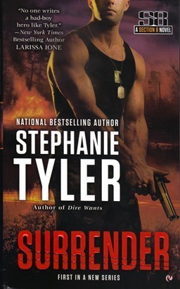 , the first novel in her new Section 8 series, is an action-packed romantic suspense novel featuring Dare O'Rourke, a former Navy SEAL and the son of a CIA black ops specialist. Dare is still trying to put his life back together after being tortured and nearly killed during a ruinous mission, but his recovery ends when he's sent to rescue Avery, a half-sister he never knew. By the time Dare finds Avery he realized someone is systematically executing his father's old team as well as their families. To stop the killing, he must find his missing father and take out the traitor -- and the only way to do that is to kidnap his enemy's daughter, Grace. What Dare doesn't know is that Grace barely escaped from her murderous stepfather with her life -- and she's already been warned that Dare is coming for her.Surrender is a dark, edgy story with lots of twists and turns to be navigated by its unusual cast of characters. Dare and the boys aren't simply unsung heroes trying to get past the ways they've been unfairly judged and treated; they operate in that shadow zone where nothing is black or white. The evolution of the relationship between Dare and Grace was fascinating to follow as it bloomed. Oh, and I'll warn you now, there's a marvelous secondary character named Gunner who will not only steal your heart but he'll probably tattoo something beautiful on it to boot.