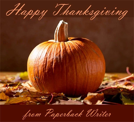 Sorry I'm a bit late posting today. I would like to congratulate everyone who participated in National Novel Writing Month; whether you made the 50K goal or not, you are all winners in my book. My advice is to now step away from your manuscript, take what I'm sure is a well-earned break, and enjoy the holidays (if you're inclined to work on your novel a bit more this month, that's fine, too.)