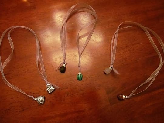 My next experiments will be with sewing on anchors to make them double-sided and hide the end knot of the loop. I'm also fiddling with thread and wire wrapping to hold them in place. For the benefit of any new visitors, if this is the first time you've seen this idea, please note that I am fine with anyone using the BookLoop design for whatever they want. Feel free to make your own, improve on it, make them into holiday gifts, promo items for your books, hand them out, sell them, whatever you like. I always love to hear what you're doing with them, too, so if you come up with an interesting variation of your own let me know.