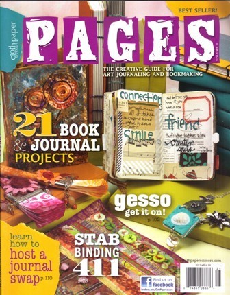 The 2012 issue of Pages, the creative guide for art journaling and bookmarking from the publishers of Cloth Paper Scissors, has just hit the newstands. I fell in love with the premiere issue last winter so there was no question I'd grab the second volume. This one has several whimsical projects in it, from creating tiny wearable books to fusing and stitching plastic shopping bags into covers. There's also a mini-workshop on Japanese stab binding which I'm going to study, as I've gotten a little bored with coptic stitch and want to stretch my binding horizons.