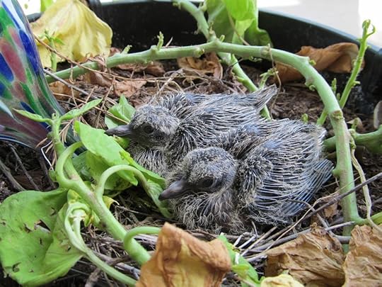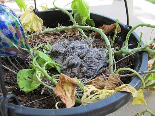 This nest is in a tricky position, so in order not to disturb them I've stopped watering the plant. It may not survive this time, but one look at these little faces makes it worth losing one sweet potato vine.