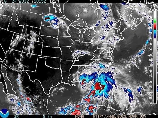 Debby is shaping up to be our first tropical storm of the 2012 season, so we're shutting down all the computers and devices and otherwise getting things ready here. We don't expect much more than some flooding and power outtages, but our region will likely remain under a tornado watch until it passes. I'll check in when I can. NOAA's latest advisory on Tropical Storm Debby can be found here.