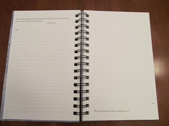 At BAM I found "The Sayings of Mark Twain" journal, published by Piccadilly, with quotations from Mr. Clemens printed on each page. The book is hardcover/spiral bound, and the pages are a nice weight, college-ruled and tinted a very light blue in keeping with the journal's color scheme. There were also other journals of the same design in different colors offering the sayings of Rumi, Buddha, and Jesus. I got my Twain for $7.97 discounted.