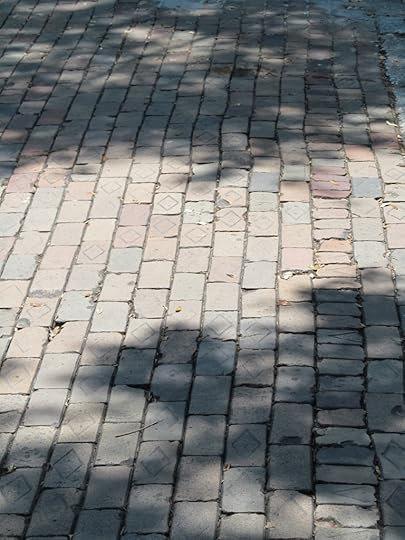It's not a yellow brick road, but it could be. The diamond shapes want to be counted, encoded, decoded. A game of dodge car and hopskotch, all in one. Perhaps one of the bricks is loose, and when you pry it up there will be something hidden under it, or written on the underside. When the street pavers come, as they inevitably do, what happens to all the old bricks? Do you nick some from the road construction dumpster, a couple at a time, and take them home to build something?