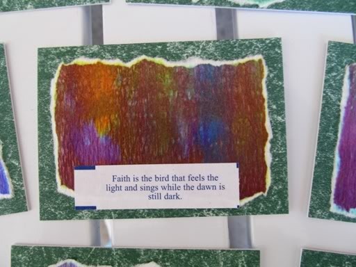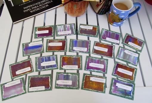 To prevent misplacing or losing my 2011 theme fortune, I made it into an artist trading card, something I'm using as my annual art project for this year (more on that at the photoblog here.) I decided to do the same thing with these fortunes and make them into an ATC series. I've named the cards my story prompt deck, and my goal is to pick at least one card at random every month and use it to inspire a short piece of fiction.