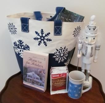 Today I'm adding to the Let It Snow tote a trade paperback copy of my Christmas inspirational novel Home for the Holidays, a new snowflake mug, and a week's supply of Nestle's Hot Cocoa mix with mini-marshmallows. The mystery item for today is something I've mentioned in this post that is not a book.If you'd like a chance to win this giveaway, in comments to this post tell us what is your favorite holiday-themed novel (or if you can't think of one, just toss your name in the hat.) I will draw one name at random from everyone who participates by commenting on this or any of my other Let It Snow giveaway posts from now until midnight EST on Wednesday, December 21, 2011, and send the winner the tote with all the contents. This giveaway is open to everyone on the planet, even if you've won something here at PBW in the past.