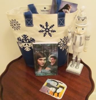 This year I want to celebrate the gift of reading by filling this lovely Let It Snow designed canvas tote from Barnes and Noble with books: my books (all of which I will sign for the winner), books I love, books I want to read, and anything else interesting that captures my eye while I'm out shopping. Every day from now until December 21, 2011 I will be posting more about what goes into the tote (some things I'll show you, and some that will be surprises that I hint at to add a little mystery.) To start off, today I am putting in a set of my Kyndred novels. As for today's surprise, I just saw a copy of certain ARC accidentally fall into the bag. Hmmm, must be something everyone wants to read.