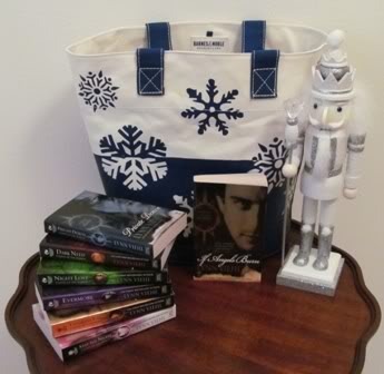 This year I want to celebrate the gift of reading by filling this lovely Let It Snow designed canvas tote from Barnes and Noble with books: my books (all of which I will sign for the winner), books I love, books I want to read, and anything else interesting that captures my eye while I'm out shopping. Every day from now until December 21, 2011 I will be posting more about what goes into the tote (some things I'll show you, and some that will be surprises that I hint at to add a little mystery.) To start off, today I am putting in a set of my Kyndred novels. As for today's surprise, I just saw a copy of certain ARC accidentally fall into the bag. Hmmm, must be something everyone wants to read.If you'd like a chance to win this giveaway, in comments to this post tell us which books you're giving away as gifts for the holidays (or if you're still out shopping, just toss your name in the hat.) I will draw one name at random from everyone who participates by commenting on this or any of my other Let It Snow giveaway posts from now until midnight EST on Wednesday, December 21, 2011, and send the winner the tote with all the contents. This giveaway is open to everyone on the planet, even if you've won something here at PBW in the past.