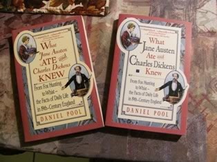 If you'd like a chance to win, in comments to this post name a reference, nonfic or how-to title that you've found particularly helpful (or if you can't think of any, just toss your name in the hat) by midnight EST tonight, October 29, 2011. I will draw one name at random from everyone who participates and send the winner my extra unsigned trade paperback copy of What Jane Austen Ate and Charles Dickens Knew by Daniel Pool, along with a surprise. This giveaway is open to everyone on the planet, even if you've won something here at PBW in the past.