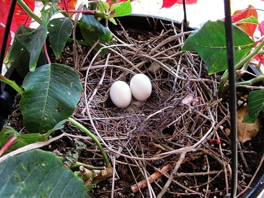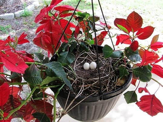 This morning I finally got a clear shot of the mourning dove who decided to nest in one of my poinsettias (click on any image to see larger version):