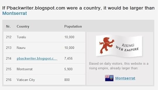 Gerard over at The Presurfer always finds such cool things online. This time one of his links sent me to Sharenator.com's WebEmpires, which visualizes your blog or web site as a country. Naturally I had to see what sort of world power we'd represent:
