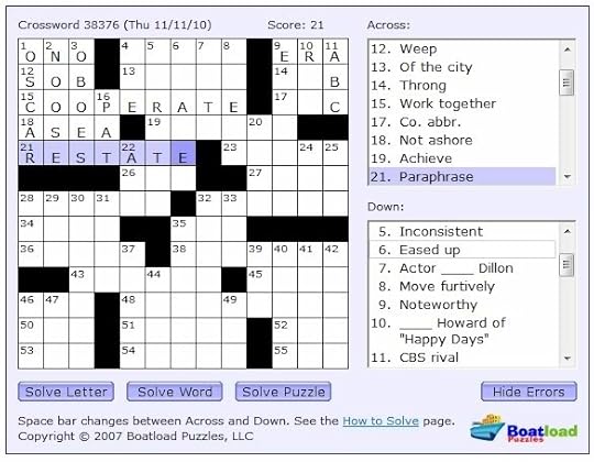 I've always been something of a fiend for crossword puzzles, so I have to be careful when I go over to BoatloadPuzzles.com to take a break there. But I like this site because if you put in the wrong word it highlights it with red letters, and it's simple enough for a kid or anyone as technochallenged as me to use.