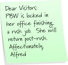 Create a sticky note online for your blog at Wigflip.com's sticky note generator, Superstickies (link swiped from Gerard over at The Generator Blog.)