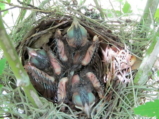 Our porchside nest of baby cardinals triplets are grown and off to start their lives; they all took their first solo flight earlier this week. This experience has been such a thrill for us, and we did our part by not mowing the lawn or making any noise near the tree while they were nesting. My guy even went out one day to chase off some curious crows who were making Mama and Papa frantic.