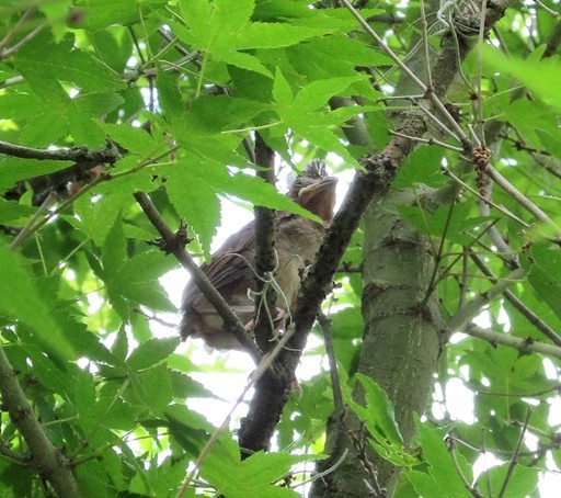 My guy and I waited until both parents left to see if we could get a couple more snaps of the triplets, who are starting to get their feathers now: