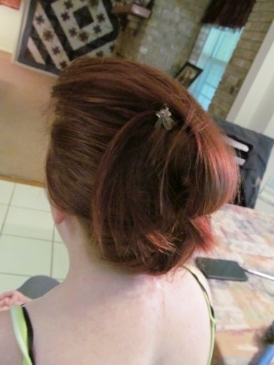 This was easy enough for Chelle to do it herself, and she thought it would be a pretty style to wear when she does her volunteer work at one of our local children's hospitals.