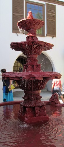 You just don't see that many red fountains around, right? My thought exactly -- and that bloomed into a bigger concept. Finally, I looked at this pic that I took from the side of a gorgeous fountain, so that the sunlight and shadows would show off the intricate art:
