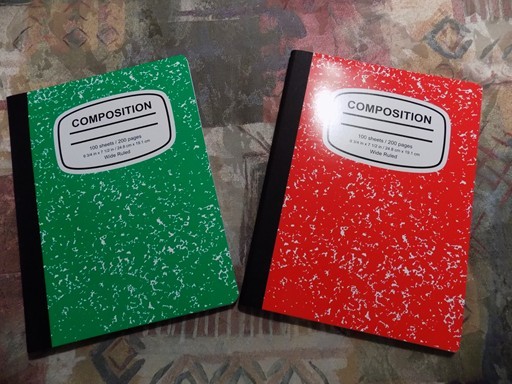The composition book, also known as a copy book, study book, student book and a lot of other regional terms, is one of the few things I loved about school. I always had one with me, and they often kept me out of trouble. After using the first couple of pages for schoolwork I would devote the rest of the pages to journaling, short stories and even some sketches. I wouldn't have wasted the first pages except they made excellent camouflage for when the teacher would walk by my desk (which is how they kept me out of trouble.) I still get a warm, fuzzy feeling every time I see one. I think my mom used to buy them for five or ten cents each.
