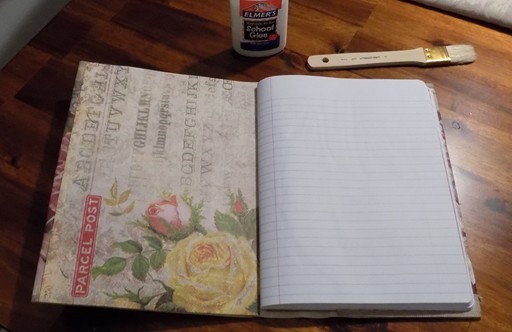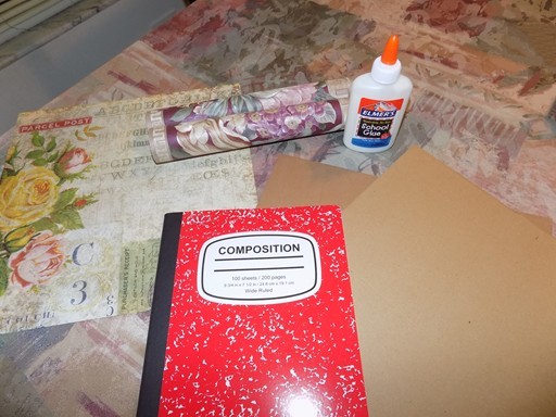 Before I get into the details of my first composition book makeover, I should explain the slightly-off weirdness of the pictures I took. On the day I started this project the little video display window on the fancy new Nikon my guy bought me last year stopped working. Basically I had to point the camera and shoot blind, then download the pictures before I knew how they came out. Fortunately Target has a very nice return policy; they took back the camera and gave me a brand-new replacement without a bit of fuss.