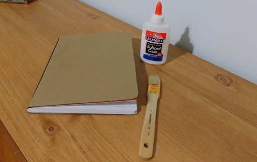 The covers of the composition book are really flimsy card stock, so I needed to reinforce them first. I cut the two cardboard pieces to fit the front and back covers, glued them on, and let the notebook dry overnight (and to keep everything from warping I sandwiched the notebook between two bigger, much heavier books):