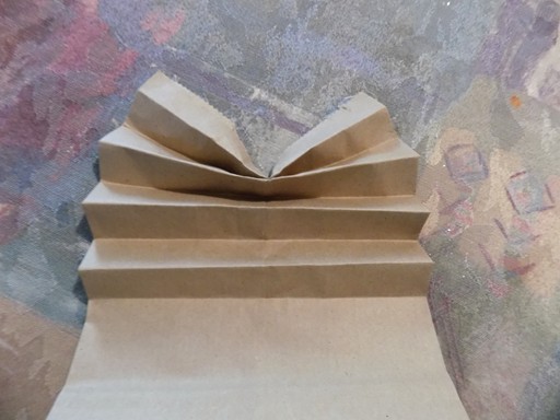 Place your gift or treat inside the bag now, and then fold the top accordion fold you've made in half, to form a fan shape: