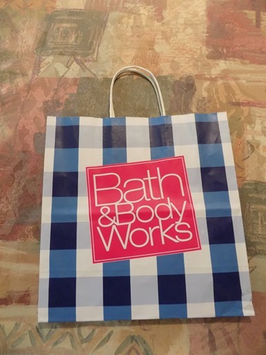 I brought this store bag home when I bought a gift at Bath & Body Works (and I always save their bags to recycle them because they're clean, usually unwrinkled, and all around nice to work with):