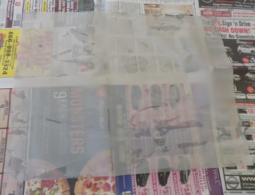 Wet your paper (which will immediately remove all wrinkles and creases from it) and spread it out on the newspaper: