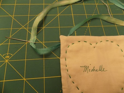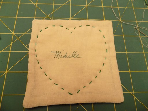 The heart is your stitching guide. Stitch around it with your embroidery thread.