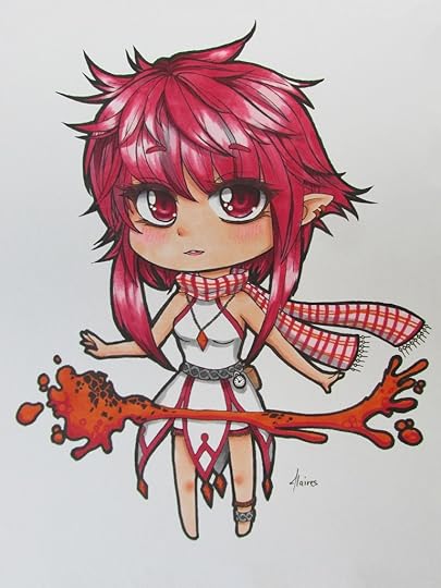 She's also struggling with the amount of work involved, but she's not a writer. Don't get me wrong, the kid can write, and she could be a writer if she chose to be, but she has no passion for it. She pours all of hers into her art, which she will do happily for hours and hours without ever noticing how much effort she puts into it. Here's one of the little chibi she did last year (and she's even better now):