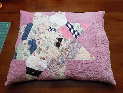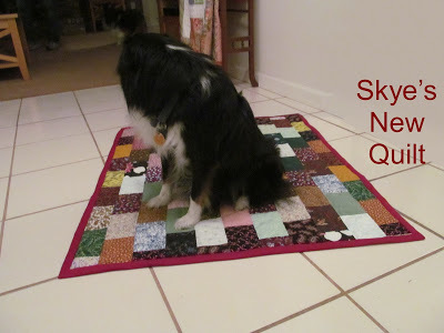 I bought a vintage quilt top at the annual county quilt show and made it into a new quilt for Skye's kennel.