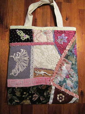 I practiced some new embroidery stitches and techniques on this crazy quilt tote.
