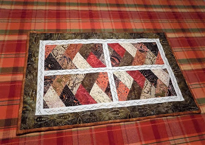 A table topper I quilted and embroidered for Thanksgiving. On Black Friday I did venture out to buy a new sewing machine, too.