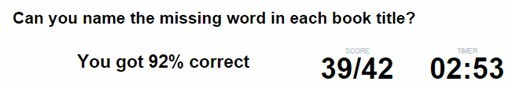 What surprised me is how many titles of books that I haven't read that I remembered -- about half of the quiz, actually -- which goes to prove that a memorable title sticks, even when someone doesn't read it.
