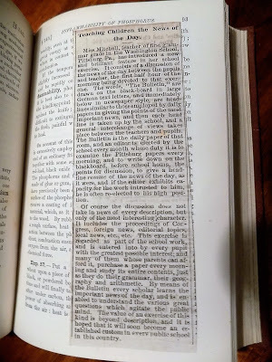 Inside we found two makeshift book marks: an article outlining the then-radical method of teachers beginning the school day by discussing the latest news with their students: