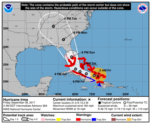 As of right now it looks like we will be dealing directly with Hurricane Irma starting tomorrow night. The last time we faced a storm this strong we had no power for 21 days afterward, so I may be scarce for a while. We have made all the proper preparations, and have been through many storms like this both here and in South Florida, so we feel confident that we'll make it through again.