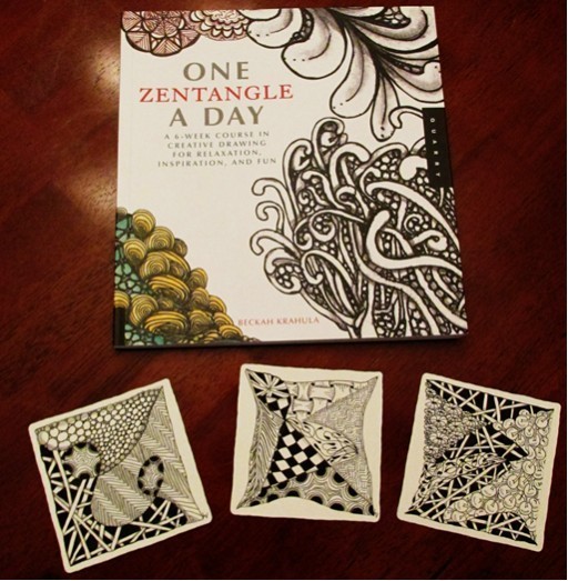 Zentangles are a meditational art form created by doodling repetitive patterns in a small space. While I've been making this sort of art since childhood I've never taken any formal/proper instruction, so I found my way to