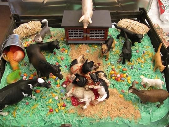 When my kid was in her last years of high school she always wanted to make her annual English Lit art project in cake. The class loved edible projects because at the end of class they got to eat them, so presenting one made you instantly popular. The kid also had me in her corner as an assistant (of all the cooking I do, I'm best at making cakes.) Unfortunately the teacher always assigned the unhappiest books for the annual project, which is how I ended up helping her to craft these two wonders: