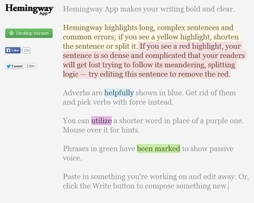 You can use this online tool to edit fiction, blog posts, e-mails, or basically anything you write, and it may see something you don't, so check it out when you have a chance.