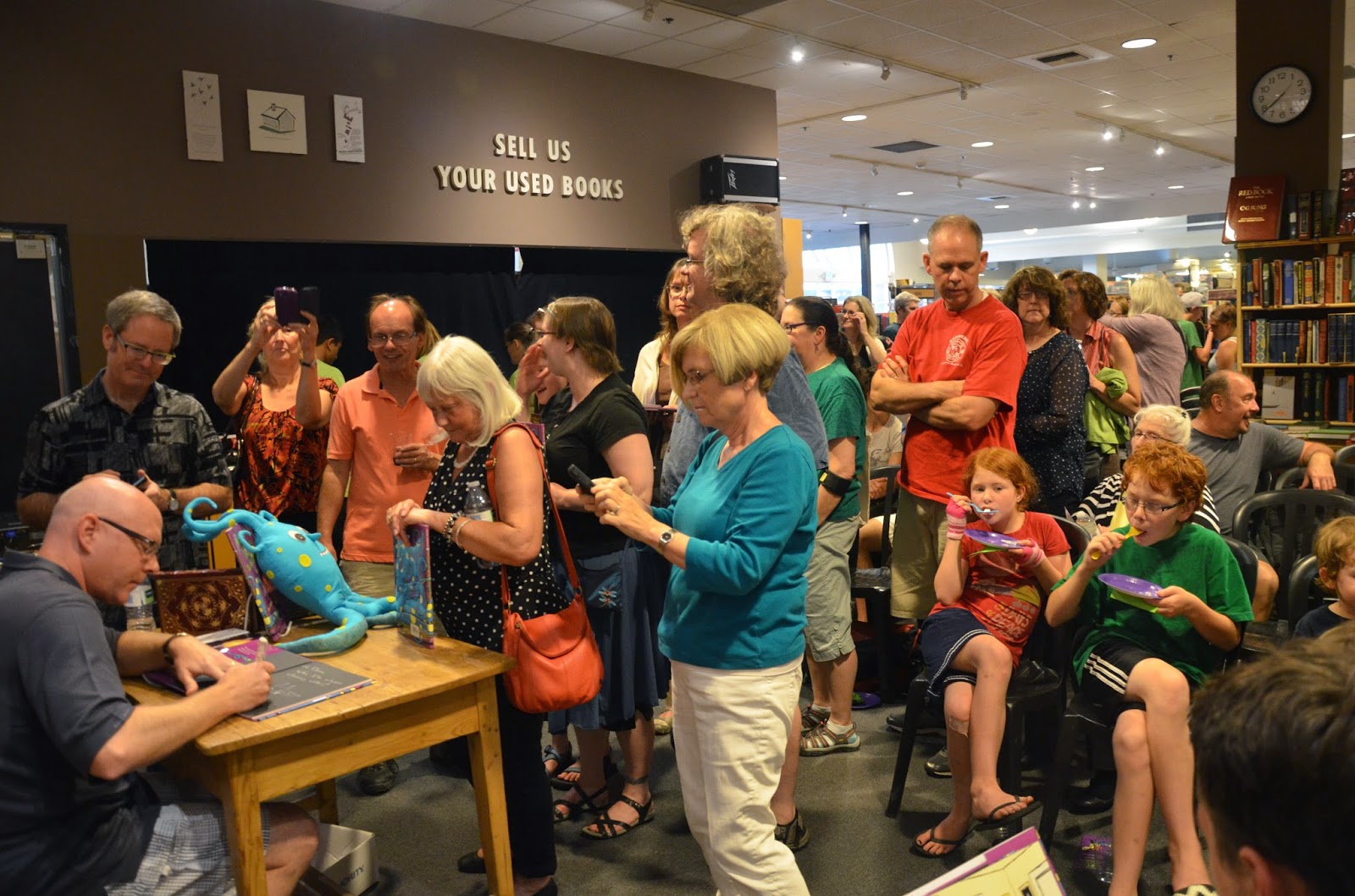 6:30pm - Discovered the first guest had arrived. Secretly wished he would leave and let me cower in peace in the back of the store. Secretly also wished he'd brought a tribe of friends with him or it might be a very sad book launch party.
